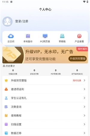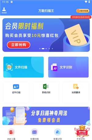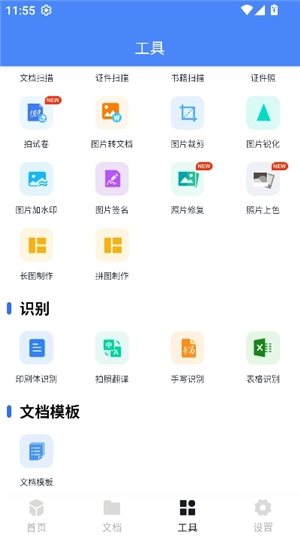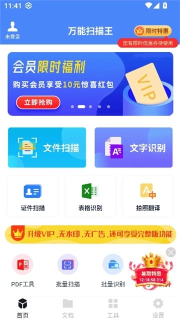 进入首页,可直接使用文档扫描、文字识别等功能。