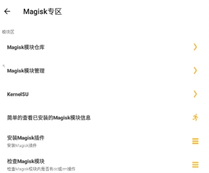 打开软件后,可依据实际需求选择对应的功能模块,比如Magisk专区。