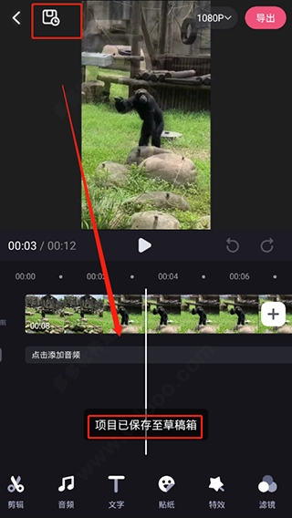 设置完成后,可点击左上角保存至草稿箱,或点击右上角进行导出,这样就完成剪辑了。
