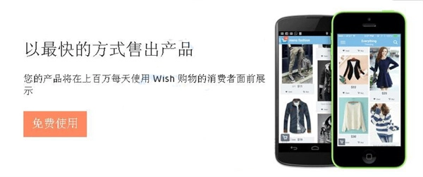 第一步:登录 china-merchant.wish.com 网站,然后点击页面上的“免费使用”按钮。