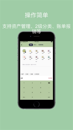 支持2级分类,各种图标满足记账需求。