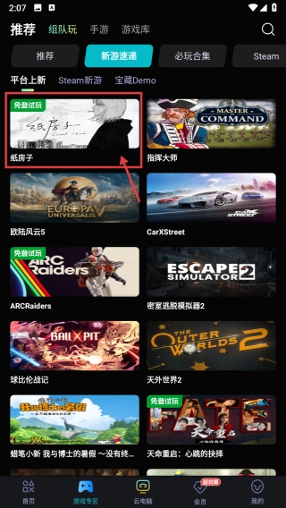 在新游推荐列表页面,点击《纸房子》这款游戏,即可进入其游戏详情页面。