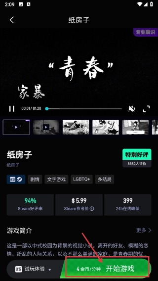 在游戏详情页面,点击“4金币/分钟”的开始游戏按钮,即可开启该游戏的体验之旅。