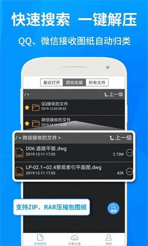 1、CAD快速看图集快速看图、三维览图、绘图、测量标注、批注、画图制图于一身的手机办公CAD软件(支持浏览PDF文件、CAD与PDF文件互相转换),全球累计用户超7000万。支持AutoCAD、浩辰CAD、天正建筑、酷家乐、BIM、知户型、齐家、测量员、装修等国内外CAD图纸格式,兼容各版本二维三维DWG文件、CAD文件,CAD图纸原生显示不失真;支持浏览RVT格式三维图纸,对三维模型进行预览、放大、缩小、旋转、剖切、爆炸等操作,查看图纸结构树与多视图;可以打开福昕、WPS、Office等办公软件的PDF文件;全面兼容天正T20V8,提升图形显示能力,天正专业图纸显示更完整、更精准。