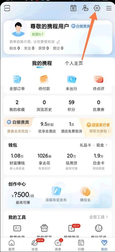 打开携程旅行应用后,点击底部导航栏的“我的”进入个人中心页面。在个人中心里,能看到各类与个人相关的功能选项,此时需要点击页面右上角的小齿轮形状的设置图标,进入设置界面。