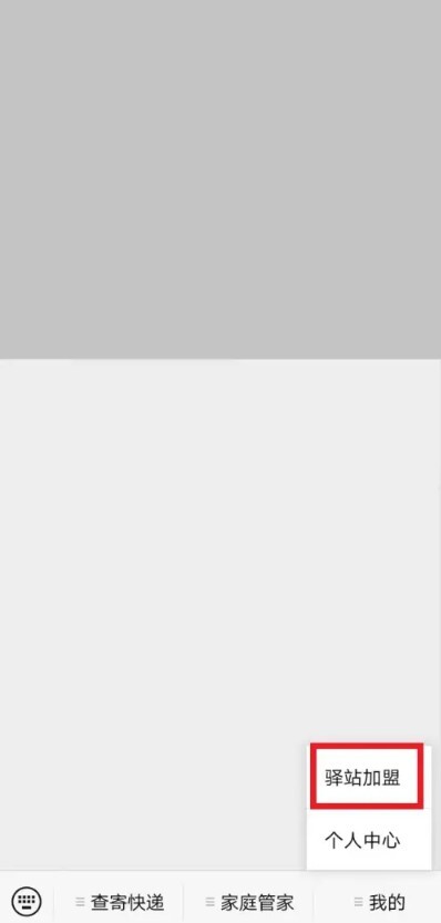 妈妈驿站页面,查看右下角我的,选择驿站加盟项目