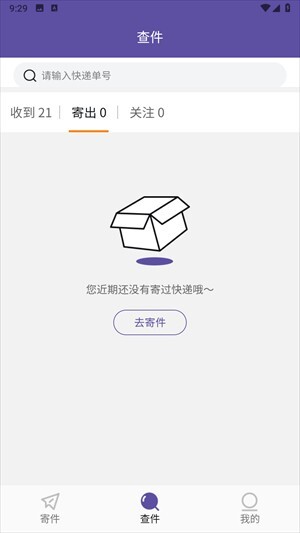 点击查件,可以直接搜索收到以及寄出的件。