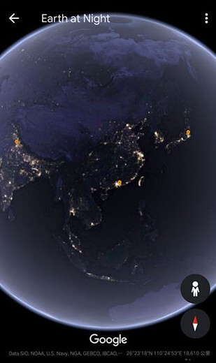 可以去查看地球上任意一处地方的夜景景色哦。