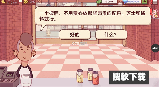 顾客的耐心始终是百分之百2.游戏速度加快两倍3.使用不减少4.使用不减少5.可口的披萨最新版没有广告