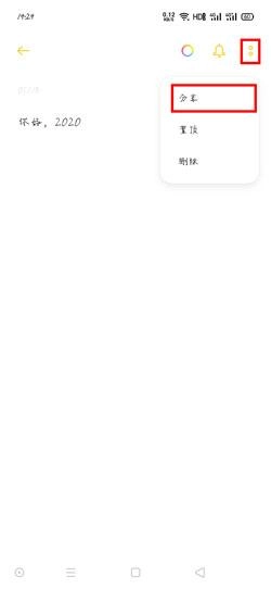 打开OPPO手机的便签应用,找到要移动的那条便签并选中它,接着点击页面右上角的【更多】按钮,然后在弹出的选项里选择【分享】功能。