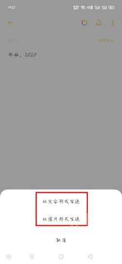 可选择以文字或图片形式发送,文字形式可直接复制便签内容,图片形式则将内容转换为图片后分享。