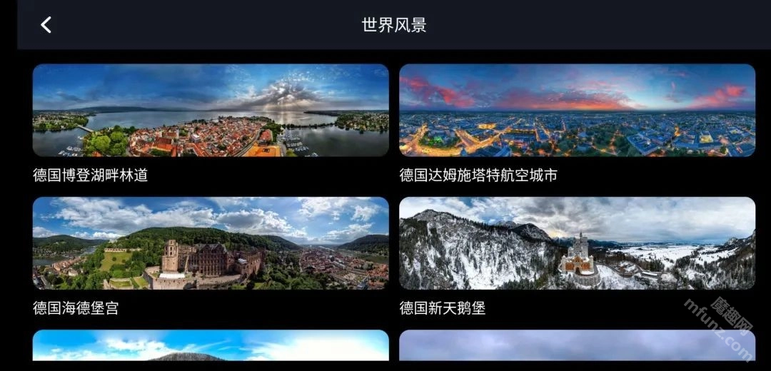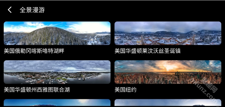 还能欣赏世界各地的风景美景,并且提供全景航拍画面,支持360°拖动浏览!