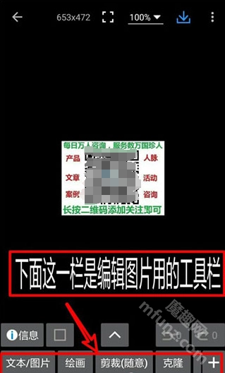 在编辑工具栏里,比较常用的功能有“文本/图片”、“绘画”、“剪裁”以及“克隆”。