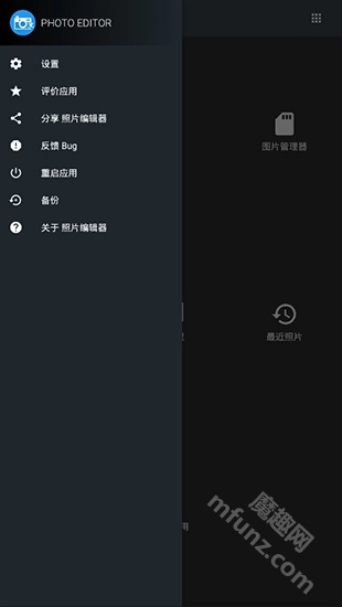 首先在魔趣网(m.mfunz.com)找到并打开photo editor apk,然后进入首页。