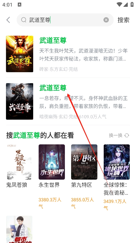 在弹出的搜索结果里找到你心仪的小说,点击一下就能进入阅读界面开启阅读之旅啦