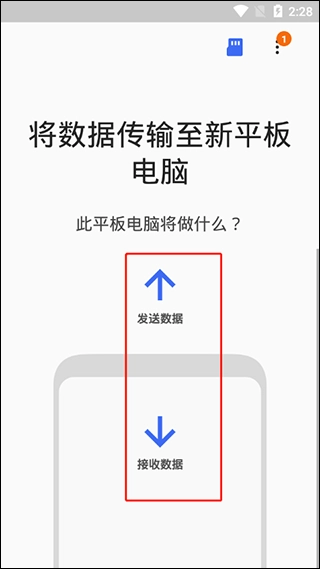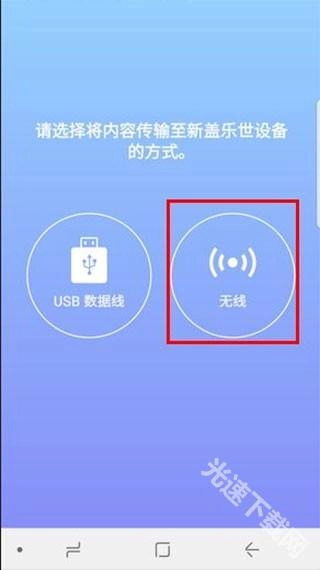 挑选把内容传送到新手机的方法,这里用选择【无线】来举例(提示:旧设备那边也得选【无线】这种方式)。