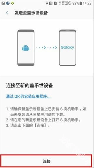 只需一键就能轻松连接,借助应用程序,可便捷实现银河设备间的数据传输。操作时,将两台设备靠近(保持在8英寸距离内),接着启动应用,再依据品牌或设备系统进行对应选择,之后点击【连接】按钮。这样一来,您就能把旧Galaxy设备中存储的个人数据,发送至已连接的另一台Galaxy设备了。