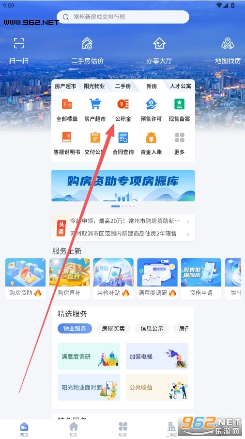 打开软件后,在首页上方的功能区域里,点击“公积金”板块。