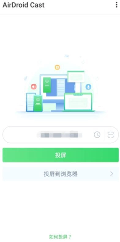 在手机上打开【AirDroid Cast】应用,输入电脑端显示的投屏码,然后点击【投屏】按钮即可。