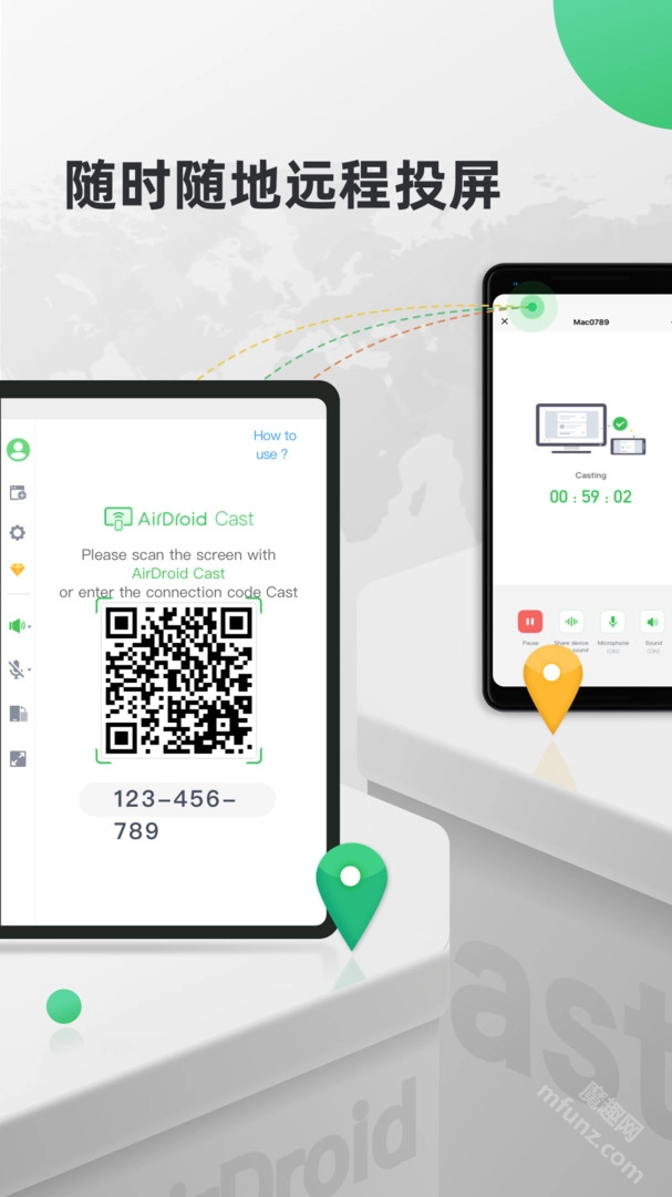 AirDroid Cast安卓版的核心功能为投屏,可将安卓设备的屏幕内容投射至Windows或Mac系统的电脑。