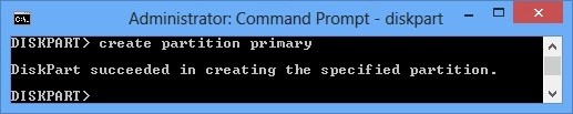 输入 create partition primary 命令,着手创建磁盘盘符。
