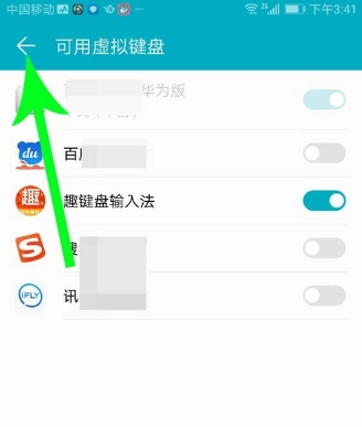 打开趣键盘输入法的锁定按钮后,点击界面左上角的“返回”图标,具体位置可参照下图。