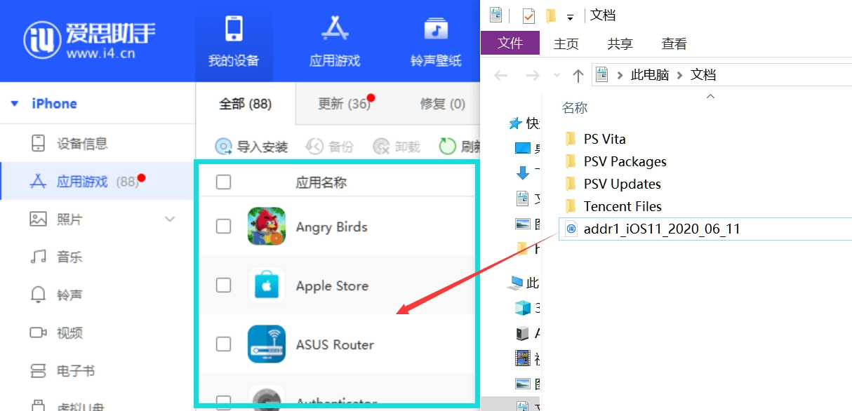第七步、接着把签好名的IPA文件拖到当前手机的应用游戏列表里,就能完成IPA文件的安装,等安装结束就可以了。