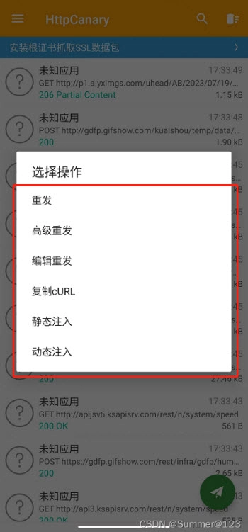 长按抓取到的请求,会弹出以下选项,你可以根据自身需求选择对应的操作。