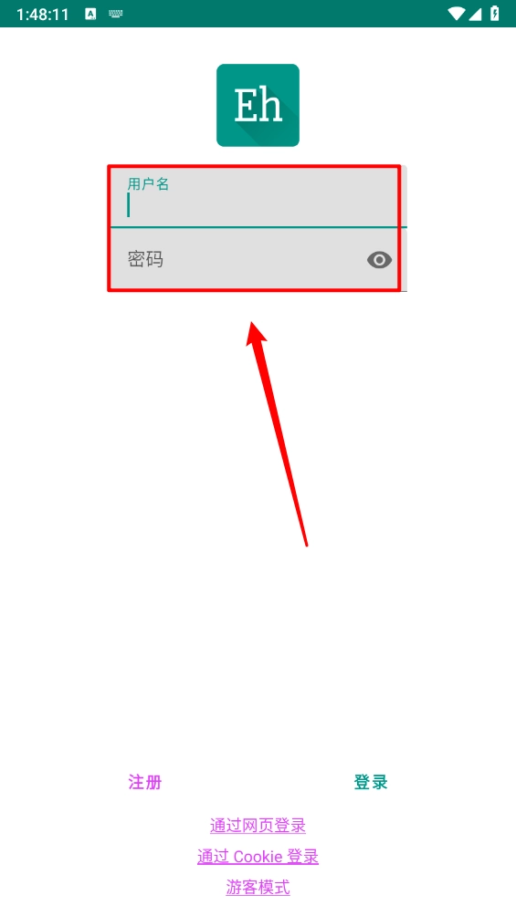 首先进入软件的主页面,接着点击页面上方的“ehviewer”栏目。