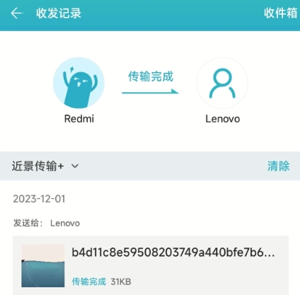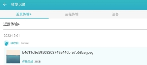 断开连接后,接收端会回到主界面,此时在“收发记录”里就能查看刚才传输的文件。