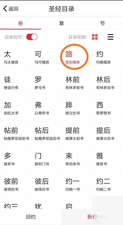 在圣经的目录中,可以看到它被分为新约和旧约两个部分。每个部分里的书卷都有一个大字作为常用简称,其下方的小字则是书卷的全名。当你点击进入某个书卷时,就能看到该书卷下的所有章节。选择特定的一章中的某一节后,圣经内容会自动跳转到所选的那一节。这样查找起来是不是很方便呢?