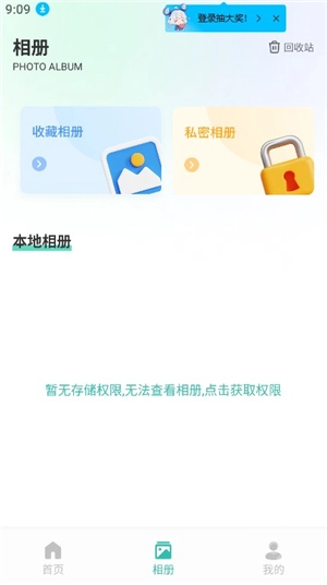 特色相册板块,支持浏览本地保存的相册,还能设置私密相册。