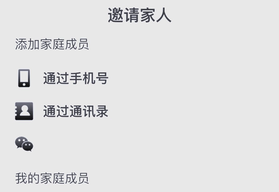 您可以选择通过手机号或微信来邀请家庭成员加入。