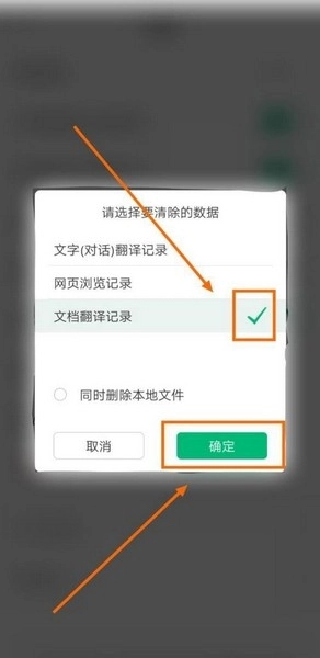 只勾选“文档翻译记录”并点击“确定”。