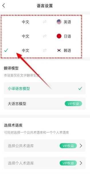 您可以根据实际需求,勾选“中英”“中日”或“中韩”这几个互译选项中的相应项就可以了。