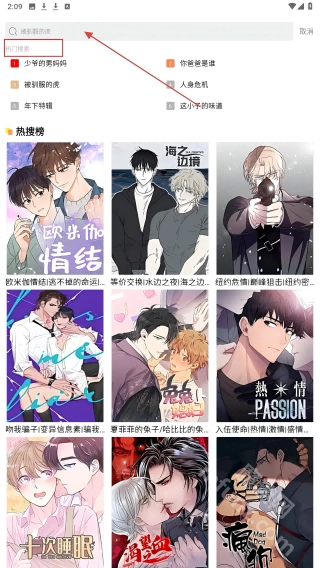 进入腐门圈后,你可以点击【搜索】按钮查找漫画,也能浏览【热门漫画】板块查看推荐内容。