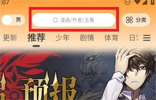 如果有想看的漫画资源,可以点击上方的搜索框。