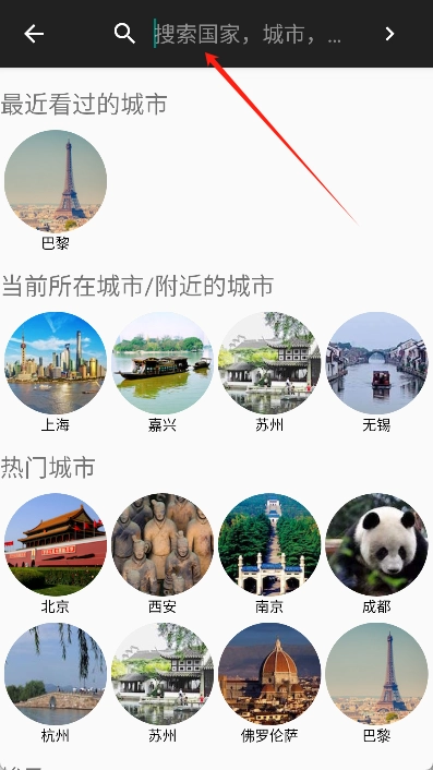 打开应用后,在首页利用搜索功能,挑选我们旅行计划里打算参观的景点。