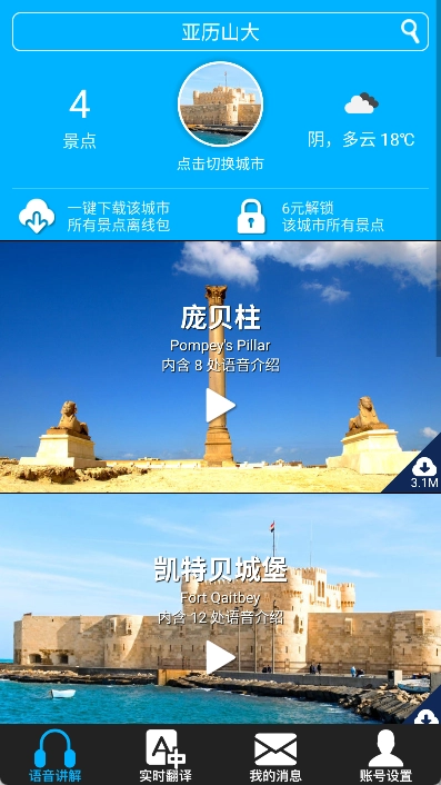为了方便在无网络环境下使用,建议提前下载景点的语音讲解内容。