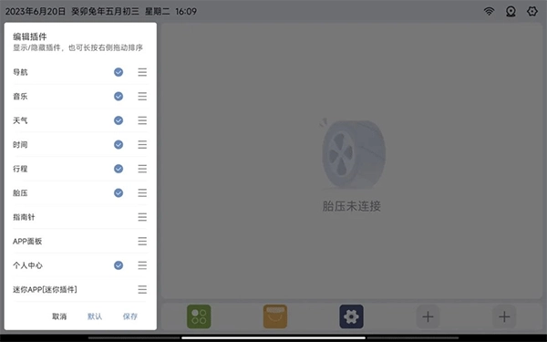 默认布局的左侧区域,会按顺序呈现地图、音乐、天气、时间、行程、胎压以及个人中心等内容,不过胎压功能需要硬件支持才能正常使用。下方是应用插件的快捷操作区,用户可以依据自身使用习惯,自定义添加常用应用。而中间的区域,则用于展示具体的应用详情。