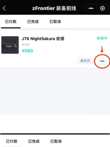 点击订单右下角的“...”按钮,弹出操作菜单。