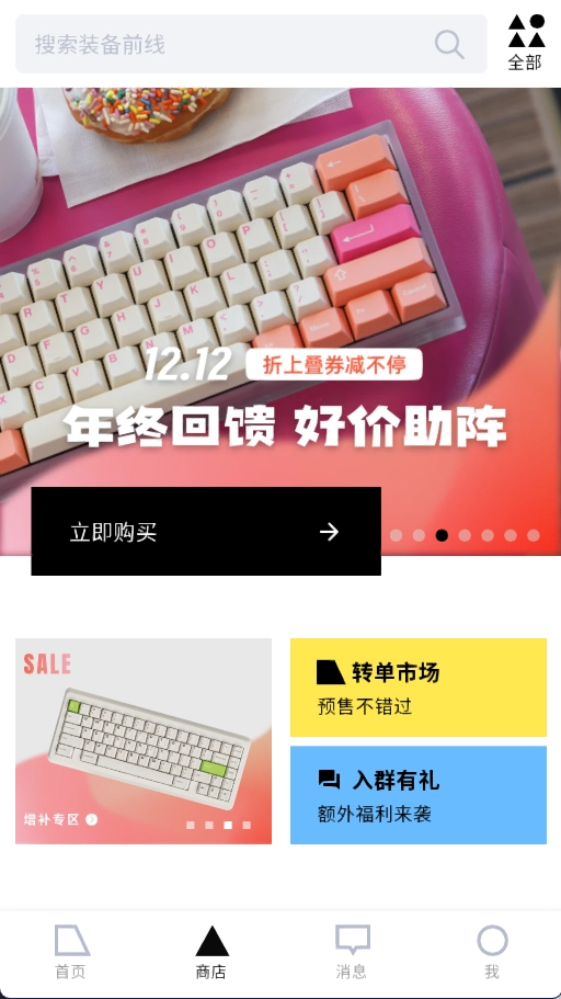 装备前线是一家专注于数码装备的线上购物平台,在这里我们既能发掘当下最前沿的数码潮流单品,也能选购到各类高品质的专业发烧装备,像电脑外设、机械键盘、视听HIFI设备等都有涵盖。要是你是电竞爱好者,在装备前线商城里就能找到客制化键盘、个性键帽这类稀缺尖货,收到货后还能进行键盘性能测试。此外,我们还能在发烧友专属社区里分享自己的装备搭配心得,同时也能发现更多实用又时尚的桌面潮流好物。