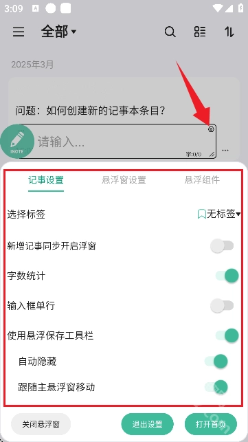 双击左侧绿色悬浮窗按钮,唤起笔记功能。