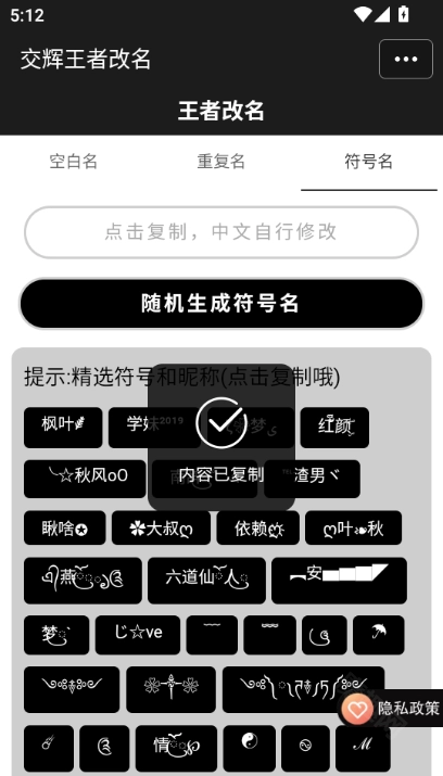 点击你所需要的符号名称,系统会自动完成复制操作,之后直接粘贴到王者荣耀中就能使用了。