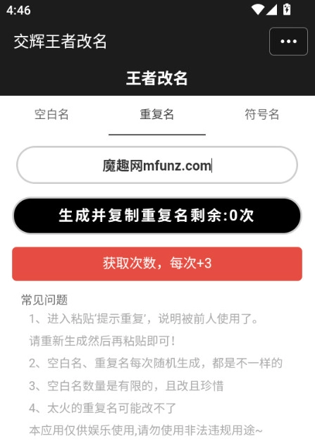 功能实用:王者荣耀重复名生成器专为解决游戏昵称重复的烦恼而设计,为玩家提供便捷的解决办法。