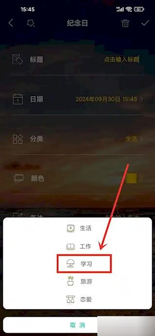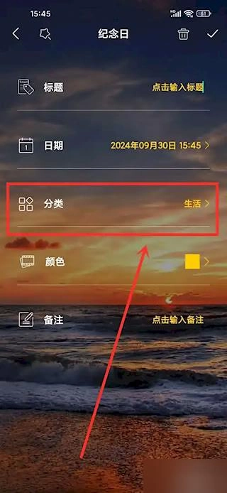 从分类列表里挑选对应的项目,就能完成纪念日基础属性的设置。