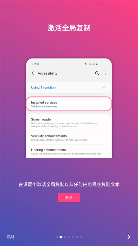 在设置里找到“全局复制”这一选项,然后开启它的“使用服务”权限。