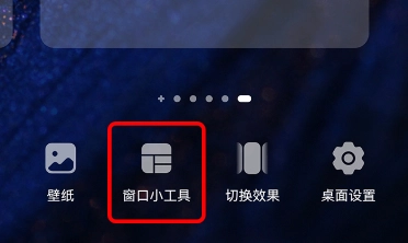 首先要长按桌面的空白处,一直到出现“窗口小工具”这个选项。