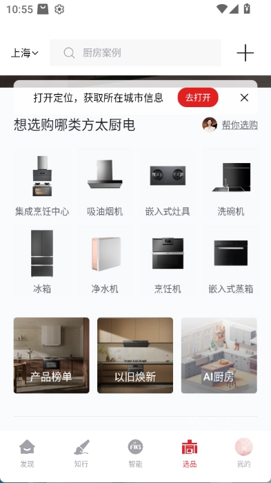 在方太幸福家的【发现】板块里,能找到方太的专属服务,还可以领取烟机清洗的优惠。