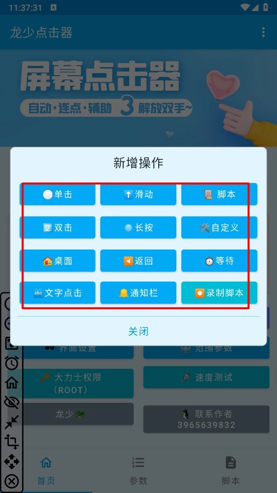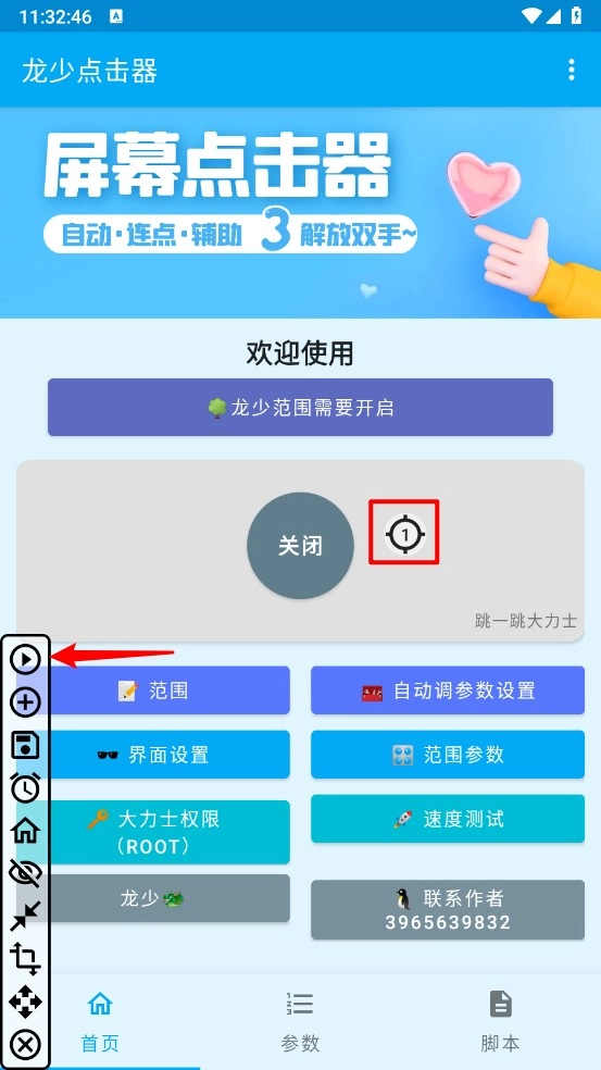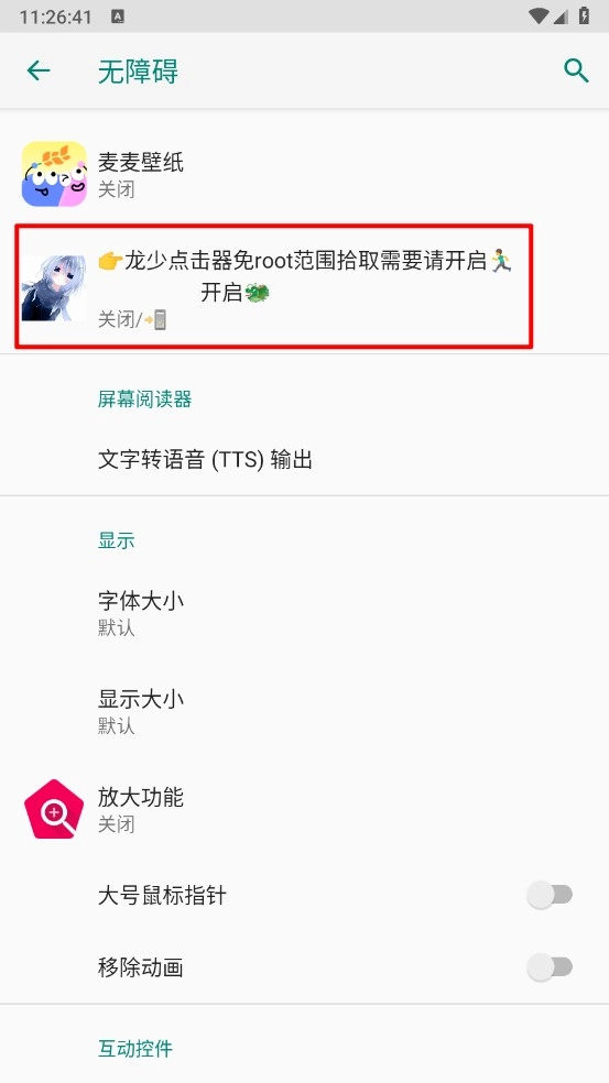 比如,进入无障碍页面点击"龙少点击器"。